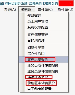 承包區(qū)中轉(zhuǎn)費(fèi):是網(wǎng)點向承包區(qū)(或業(yè)務(wù)員)收取的出貨費(fèi)。一般也是按快件重量和目的地,通過公式計算得到的(在F8系統(tǒng)里叫”承包區(qū)中轉(zhuǎn)費(fèi)維護(hù)“,F(xiàn)8系統(tǒng)能自動按報價計算,不同的目的地價格不同,不同的承包區(qū)價格可以不一樣)。