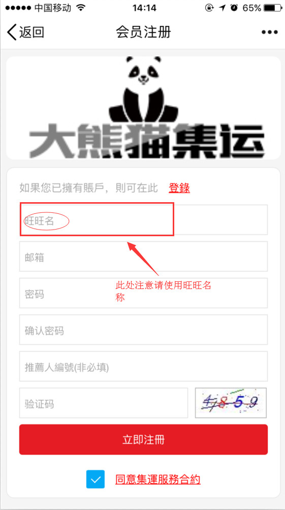 第一步:注冊成為集運會員