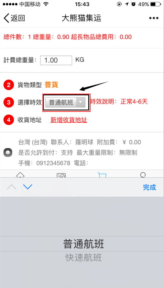 第六步:選擇快遞航班時效